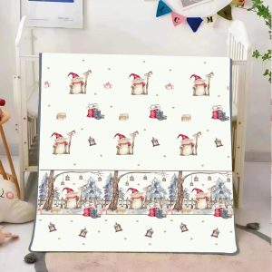 Puha és meleg karácsonyi plüss dísztakaró – karácsonyi manók mintával 200 x 230 cm (BBCD)