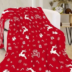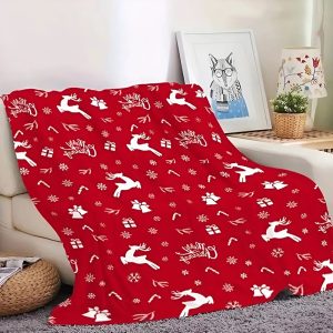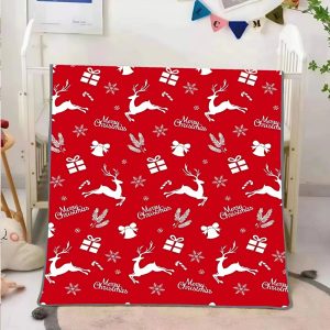 Puha és meleg karácsonyi piros plüss takaró – rénszarvas mintával 150 x 200 cm (BBCD)