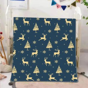 Puha és meleg karácsonyi plüss takaró – arany színű rénszarvas mintával 150 x 200 cm (BBCD)