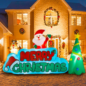 Óriás felfújható mikulás karácsonyi dekoráció – kültéri, megvilágított udvari dísz 280×130 cm (BBJH)