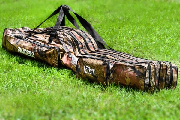 A 150 cm hosszú, három különálló tároló részből álló botzsák kiválóan alkalmas minden olyan horgászbot tárolására és szállítására,mely összecsukott állapotban nem haladja meg a 150 cm-t. A három különálló fakk, külön-külön cipzárral zárható. A botzsák szakszerű kialakításának köszönhetően nem szükséges az orsókat leszedni,így a botokat orsóval szerelt állapotban, biztonságosan tudjuk szállítani. A botzsák oldalán további két különböző méretű tárolózsebet találunk,mely kiválóan alkalmas további felszerelés tárolására.