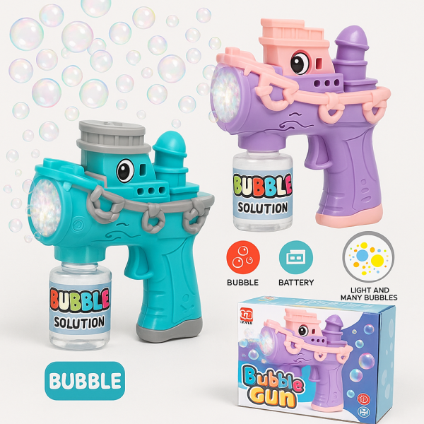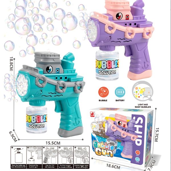 Automata hajó formájú buborékfújó pisztoly – elektromos buborékfegyver gyerekeknek kültéri mókához (BBJ)