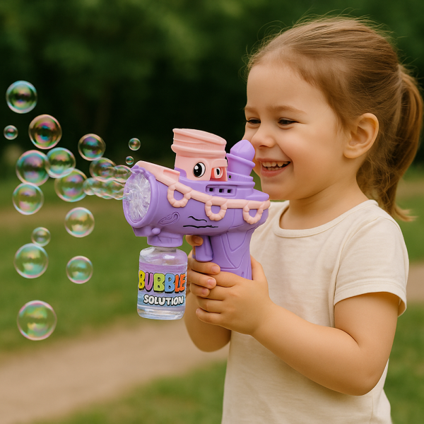 Legyen szó ajándékról vagy egyszerű hétköznapi meglepetésről, ez a hajó formájú buborékfegyver garantáltan mosolyt csal a gyerekek arcára, és színes, vidám élménnyel tölti meg a szabadban töltött időt.