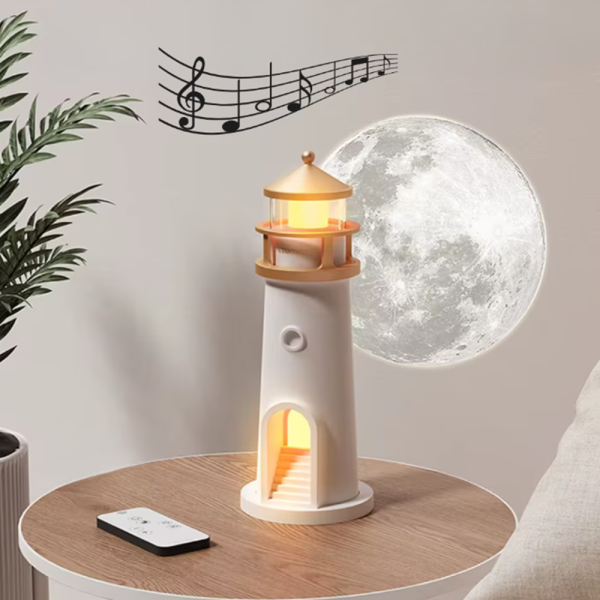 Engedd, hogy a hangulat, a fény és a zene találkozzon egyetlen stílusos eszközben! Ez az egyedi világítótorony formájú dekorlámpa három funkciót ötvöz: meleg hangulatvilágítás, valósághű holdprojektor és Bluetooth hangszóró, így garantáltan különleges atmoszférát teremt otthonodban.