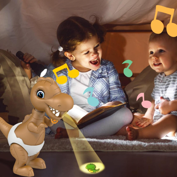 A dinoszaurusz formájú projektor feje mozgatható, ami nemcsak látványos, hanem segít a vetítési szög beállításában is. A vidám dínós kialakítás még vonzóbbá teszi a játékot a gyerekek számára.