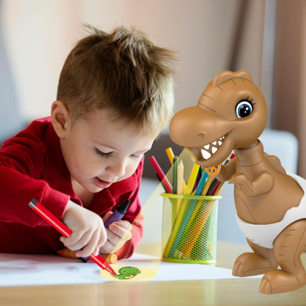 Dínós rajzprojektor gyerekeknek 3 éves kortól – 24 mintás vetítős rajzkészlet mozgó fejjel (BBMJ)