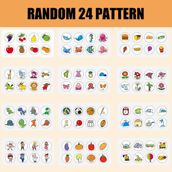 Mindegyik korong 8 különböző mintát tartalmaz, így a gyerekek mindig új képeket alkothatnak.