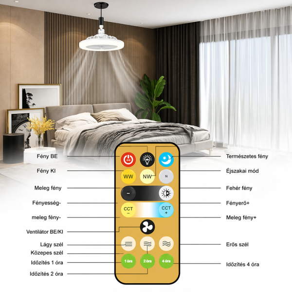 ✔ ventilátor és fény külön szabályozható