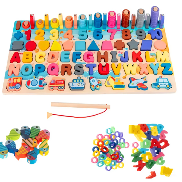 - Logaritmikus oktató tábla: A tábla különféle logaritmikus és matematikai elemeket tartalmaz, amelyek segítik a gyerekeket az alapvető matematikai fogalmak és műveletek megértésében.