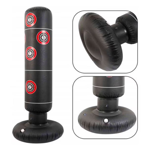 - Felfújható kialakítás: A boxzsák könnyen felfújható és leereszthető, így egyszerűen tárolható és szállítható. Nincs szükség bonyolult rögzítési megoldásokra.