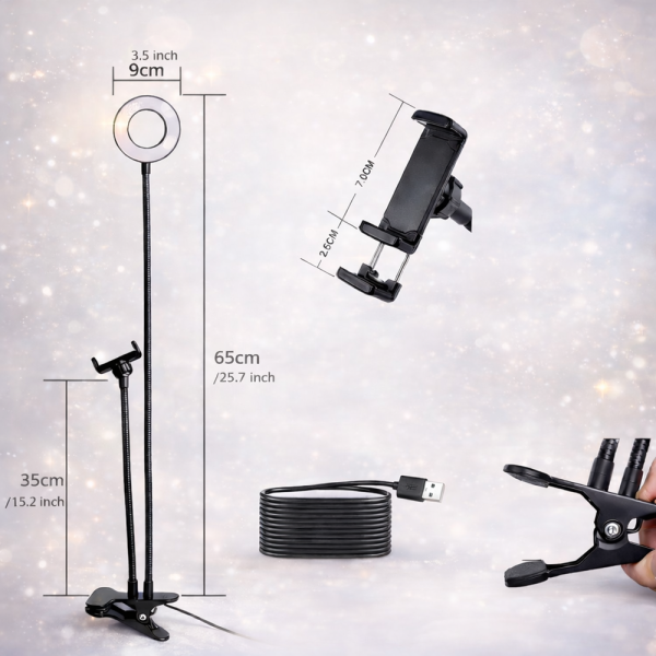 Ez a LED körlámpás telefontartó állvány kiváló eszköz TikTok, YouTube, Instagram, Facebook live videók, smink tutorialok, vlogok és online meetingek készítéséhez is. 🎥✨
