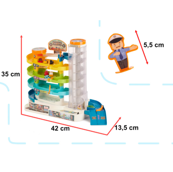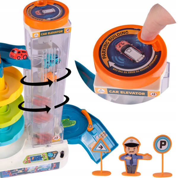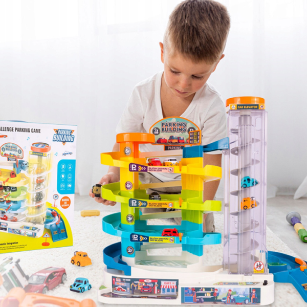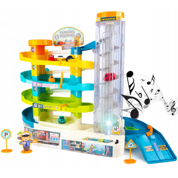 Vigyázz, kész, induljon a móka! 🎉 Ez a 4 szintes gyermek parkolóház tele van izgalommal, kacagással és interaktív játék élménnyel, amely garantáltan leköti a kis autórajongókat. Az elektromos lift, fények és hangok segítségével a gyerekek úgy érezhetik magukat, mintha igazi városi közlekedés irányítói lennének! 🚦