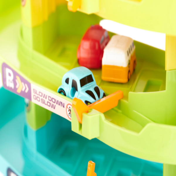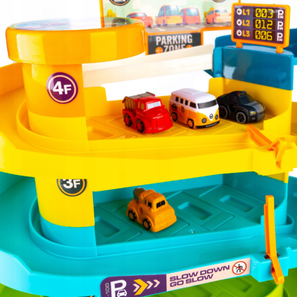 4 szintes őrületes parkolóház – minden szinten kanyarok, lejtők és parkolóhelyek, ahol a kisautók száguldozhatnak 🏎️💨