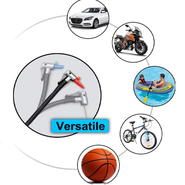 - Sokoldalú felhasználás: Autó, motor, kerékpár, sportlabdák, matracok, játékok és egyéb felfújható tárgyakhoz.