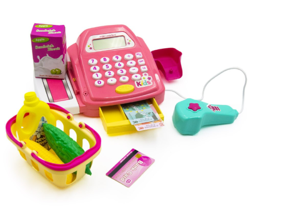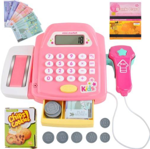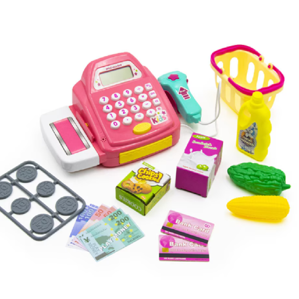 - Pénztárgép: Valódi hang- és fényhatásokkal rendelkező pénztárgép, amely beépített számológéppel és szkennerrel rendelkezik.