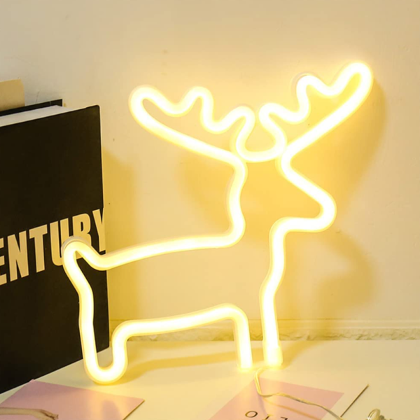 Karácsonyi LED neon dekoráció – hópehely vagy rénszarvas forma, 24×27 cm hangulatos fénydekor beltérre és ablakba (BLLV)