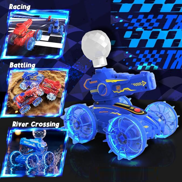 Engedd, hogy a gyerekek felfedezzék a sebesség, az ügyesség és a kaland világát ezzel a lenyűgöző 4WD kétéltű távirányítós kaszkadőr autóval!