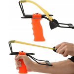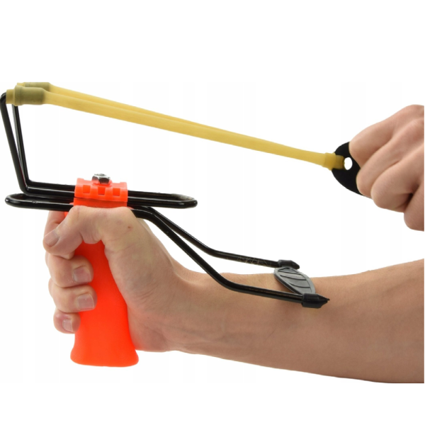 A csúzli ergonomikus felépítése biztos fogást és stabil tartást nyújt. A csúszásmentes markolat növeli a biztonságot, míg az alkartámasz extra megtámasztást ad használat közben.