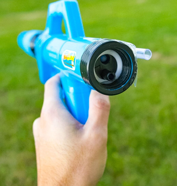 - Egyszerűen csavarja rá a választott PET palackot a vízipisztolyra, és máris készen áll a játékra!