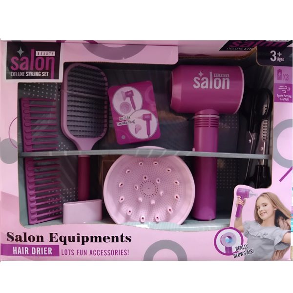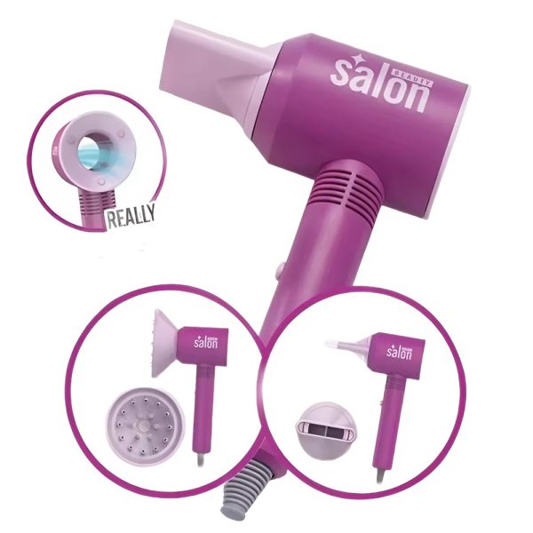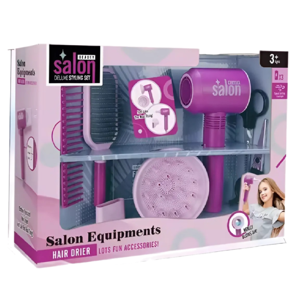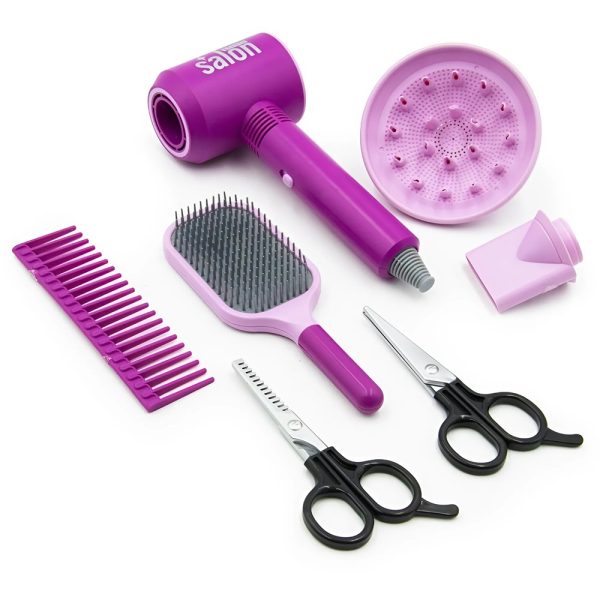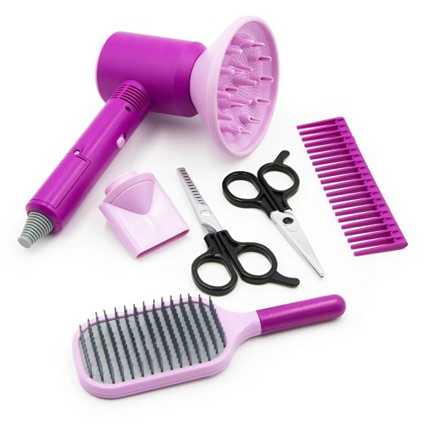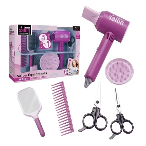 Ez a készlet számos eszközt kínál, hogy a gyerekek a legkülönfélébb hajstílusokat készíthessék el. A csomag része egy játék hajszárító különböző szűkítő fejekkel, amelyekkel a gyerekek kipróbálhatják, milyen egy igazi hajszárítóval dolgozni. A szűkítő fejek lehetővé teszik a precíz hajformázást, akárcsak egy valódi fodrászüzletben!