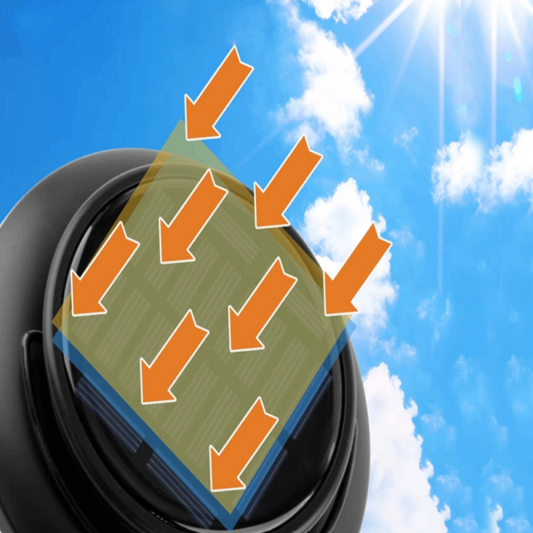 A lámpa hibrid táplálással rendelkezik: a tetején elhelyezett napelem napközben gyűjti a napenergiát, amelyet a beépített akkumulátorban tárol. Sötétedéskor a lámpa automatikusan felhasználja a felhalmozott energiát, így töltés nélkül is hosszú órákon át világít. Amennyiben az akkumulátor lemerül, a készülék USB-C porton keresztül gyorsan feltölthető, így mindig biztosított a fényforrás elérhetősége.