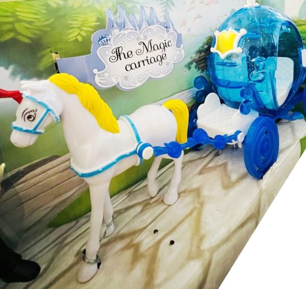 A mesebeli hintó fehér lóval lenyűgöző látványt nyújt, ahogy átszeli a légies mezőket és az elvarázsolt erdőket. A részletgazdag kialakítás és a minőségi anyagokból készült dizájn garantálja, hogy a hintóval való játék minden pillanata magával ragadó legyen.