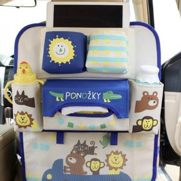 Mesés autóülés háttámla rendező tárolózsebekkel gyerekeknek – kék (FX) (BLLV)