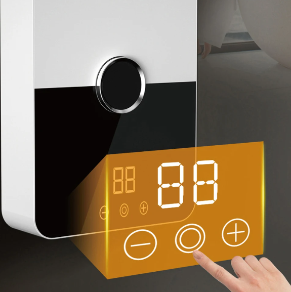 Tapasztalja meg a kényelmet és a stílust ezzel a modern megjelenésű digitális hőmérséklet-szabályozós átfolyós vízmelegítő csapteleppel, amelyhez praktikus zuhanyfej is tartozik.