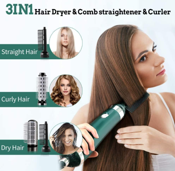 Fedezze fel a professzionális stílus és kényelem tökéletes kombinációját a negatív ionos 3 az 1-ben forró levegős hajszárító és hajegyenesítő fésűvel!