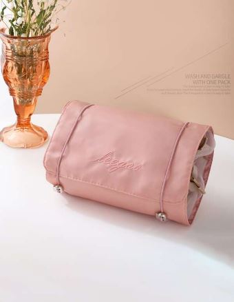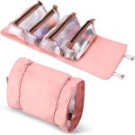 Összehajtható utazó kozmetikai táska 4 rekesszel – 3 kivehető résszel, feltekerhető, pink (BBI-4107)