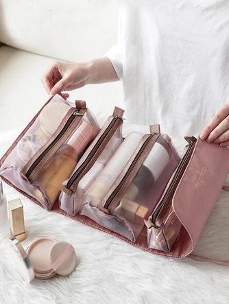 Szervezd kozmetikai termékeidet könnyedén és stílusosan ezzel az összehajtható utazó kozmetikai táska 4 rekesszel és praktikus kivehető részekkel.