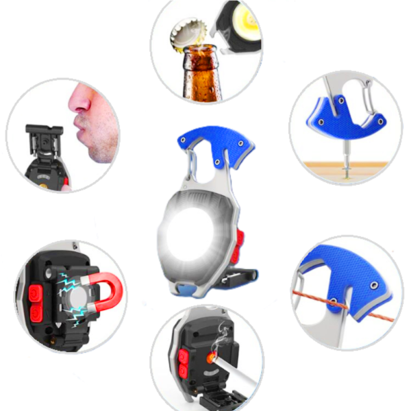 Ismerd meg a sokoldalú és megbízható többfunkciós zseblámpát, amely kiválóan alkalmas a különféle feladatok egyszerű és hatékony kezelésére. Ez a készülék nemcsak zseblámpaként szolgál, hanem rendelkezik rugós kampóval, ablaktörővel, csavarhúzóval, mágnessel és számos más hasznos funkcióval, amelyek ideálisak szabadtéri kalandokhoz, vészhelyzetekhez és mindennapi használatra egyaránt.