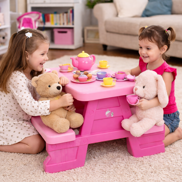 - Kényelmes ülések 4 gyermeknek: Az asztal mellett akár 4 kisgyermek is kényelmesen elfér, akik együtt játszhatnak, vagy finom nasikat fogyaszthatnak.