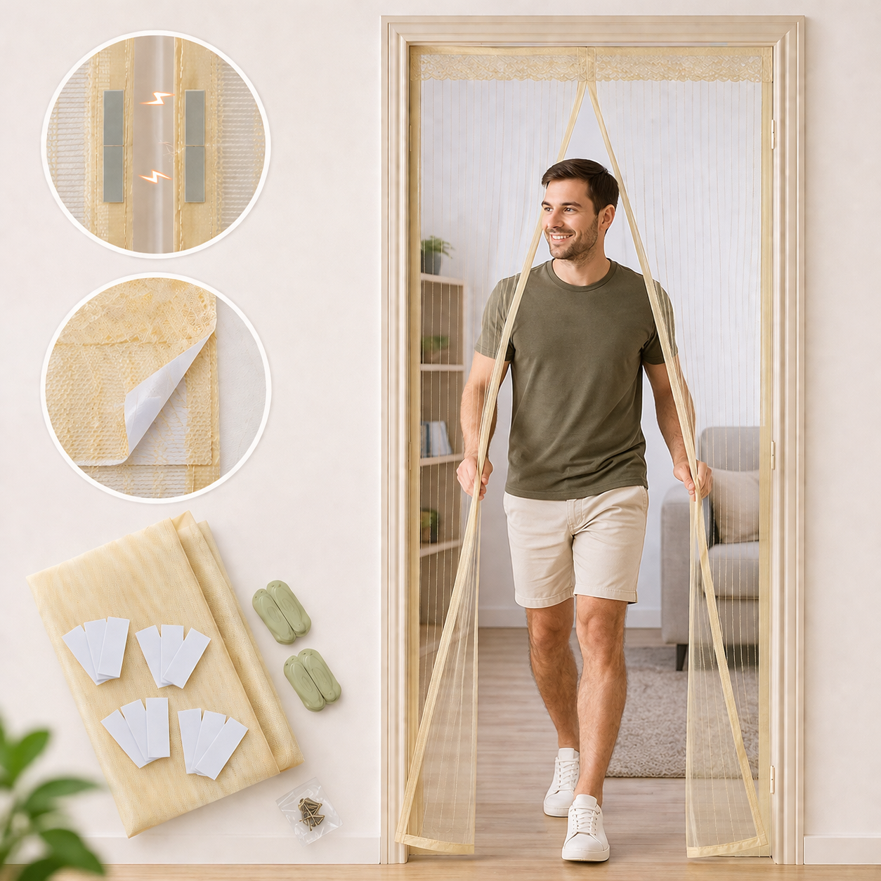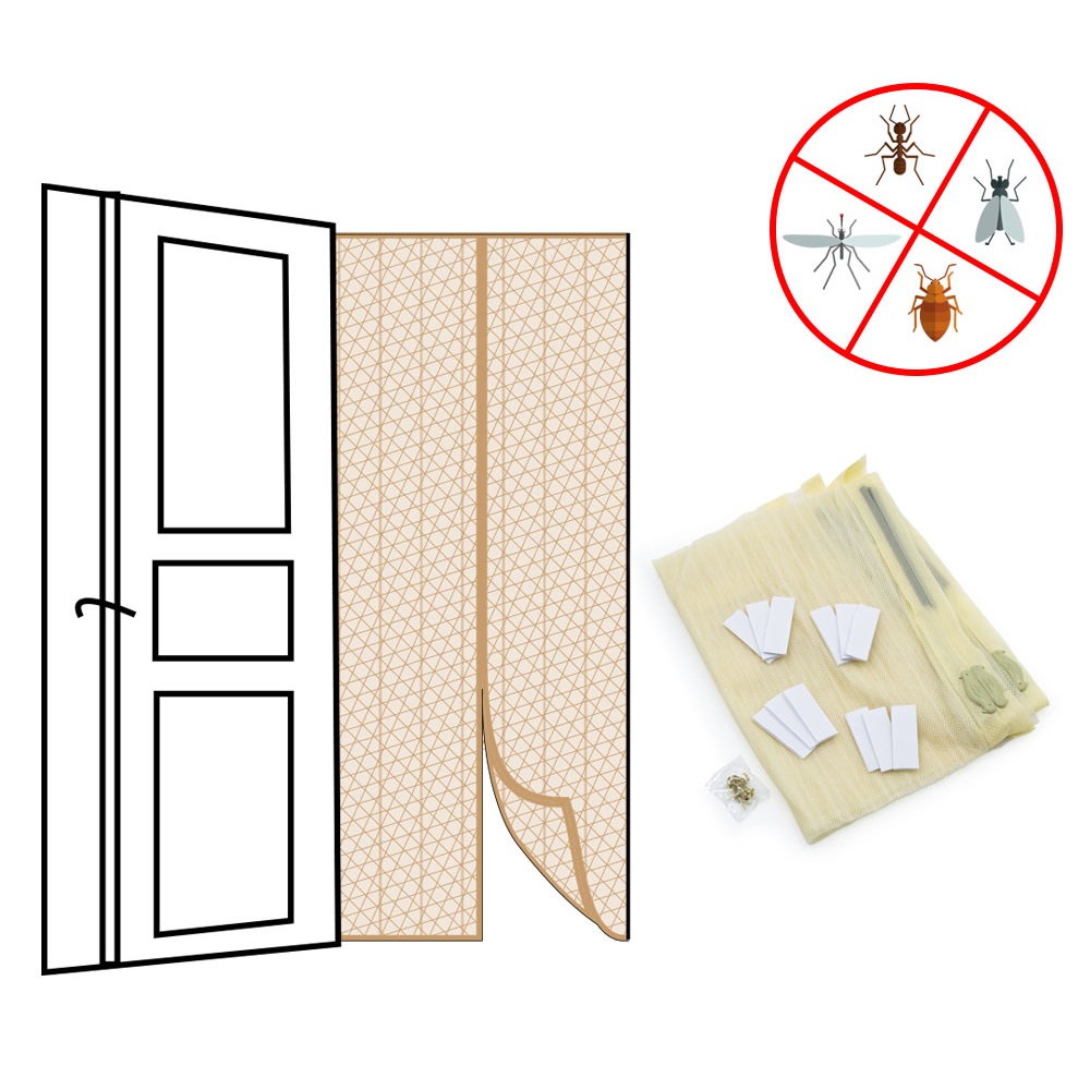 Mágneses szúnyogháló ajtóra – rovarfüggöny / 120×220 cm – vajszínű (675)