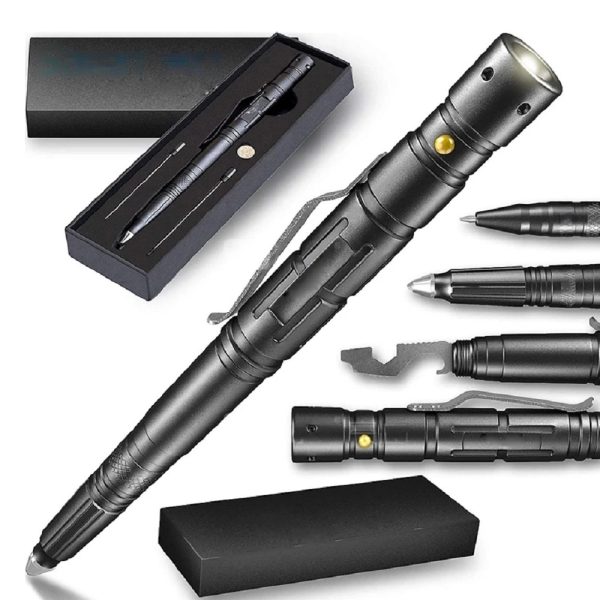 Masszív, fém házba épített, számtalan funkciót kínáló, kis méretű, kompakt taktikai túlélő eszköz. Mérete alig nagyobb egy hagyományos golyóstollnál, tudásban viszont messze felülmúlja azt! Találhatunk benne üvegtörő kalapácsot, lapos- és csillagcsavarhúzót, sörnyitót, vészhelyzeti sípot, többfunkciós zseblámpát fókuszálható fénnyel, valamint golyóstollat. A kis eszköz egy praktikus övcsipesszel van ellátva, így könnyen rögzíthető ruhára, táskára. A beépített LED lámpa körülbelül 0.5W teljesítményű, működtetéséhez 3 db LR44 típusú gombelem szükséges, melyet a csomag tartalmaz.