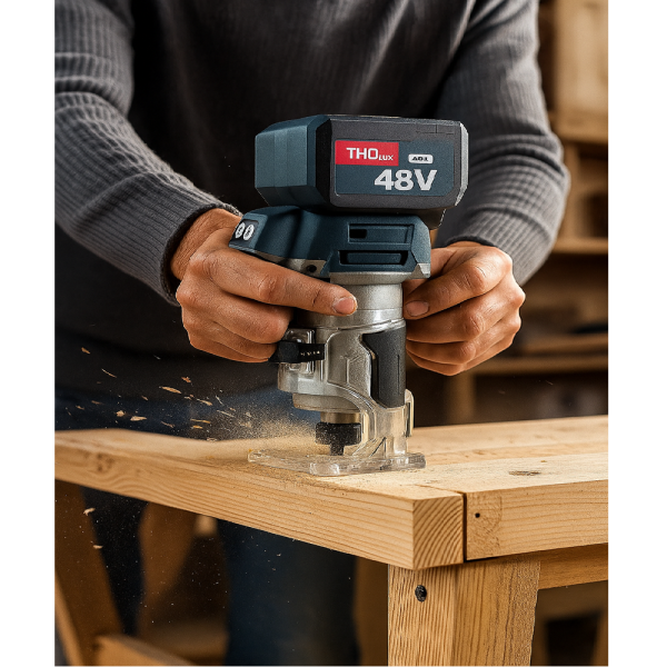 THO Lux akkumulátoros felsőmaró 600W teljesítménnyel – 48V, 28.000 fordulat/perc, precíz faipari marógép M-8101 (FX) (BBD)