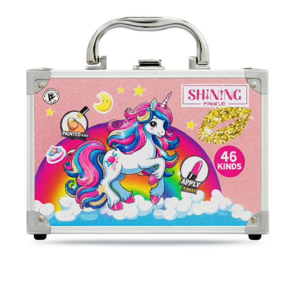A teljes készlet egy strapabíró, unikornisos mintájú fém kofferben kapott helyet: