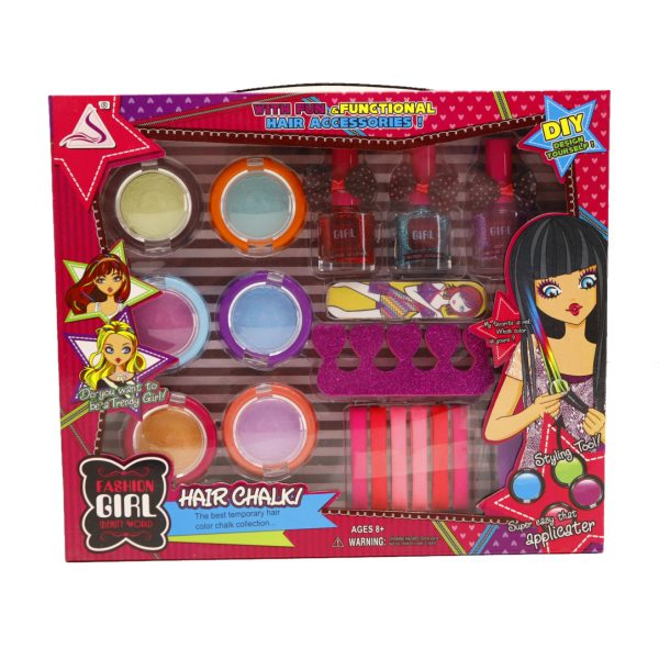 A kis lányoknak szánt játékos szépségkészletünk hajkrétával és körömlakkal lehetővé teszi számukra, hogy kreatívak legyenek és szórakozzanak a saját szépségápolási kalandjukban.