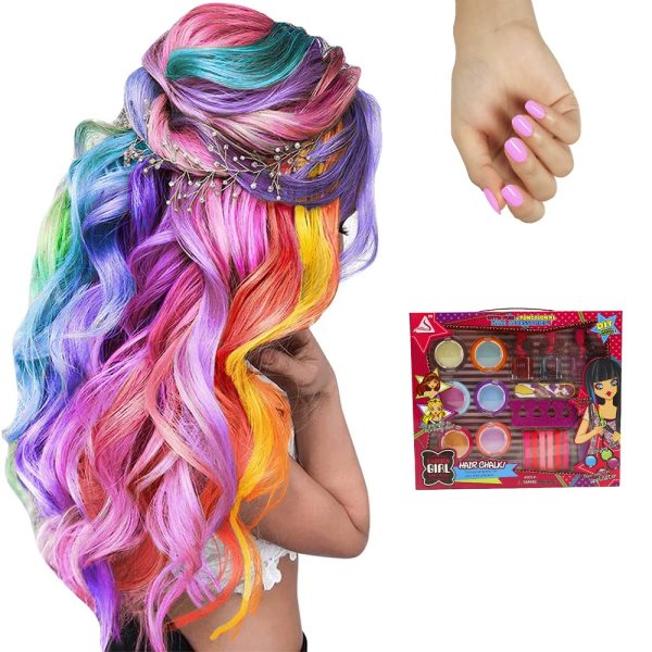 XXL szépítkező készlet kislányoknak 6 féle színes hajkrétával és 3 féle csillogó körömlakkal (BBJ)