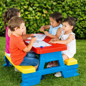 Színes gyermek kerti pad és asztal szett – tartós műanyag 70 x 79 x 47 cm, kék (BBJ)