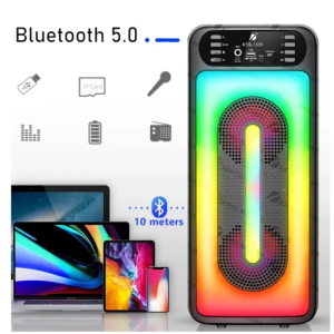 Hordozható vezeték nélküli Bluetooth hangszóró RGB LED világítással és beépített mikrofonnal KTS-1555 (FX) (BBD)