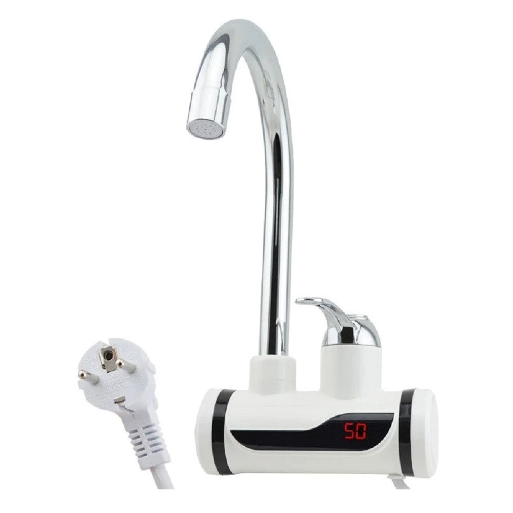 LED kijelzős vízmelegítő csaptelep – fali csatlakozású, tusrózsával (BBL)