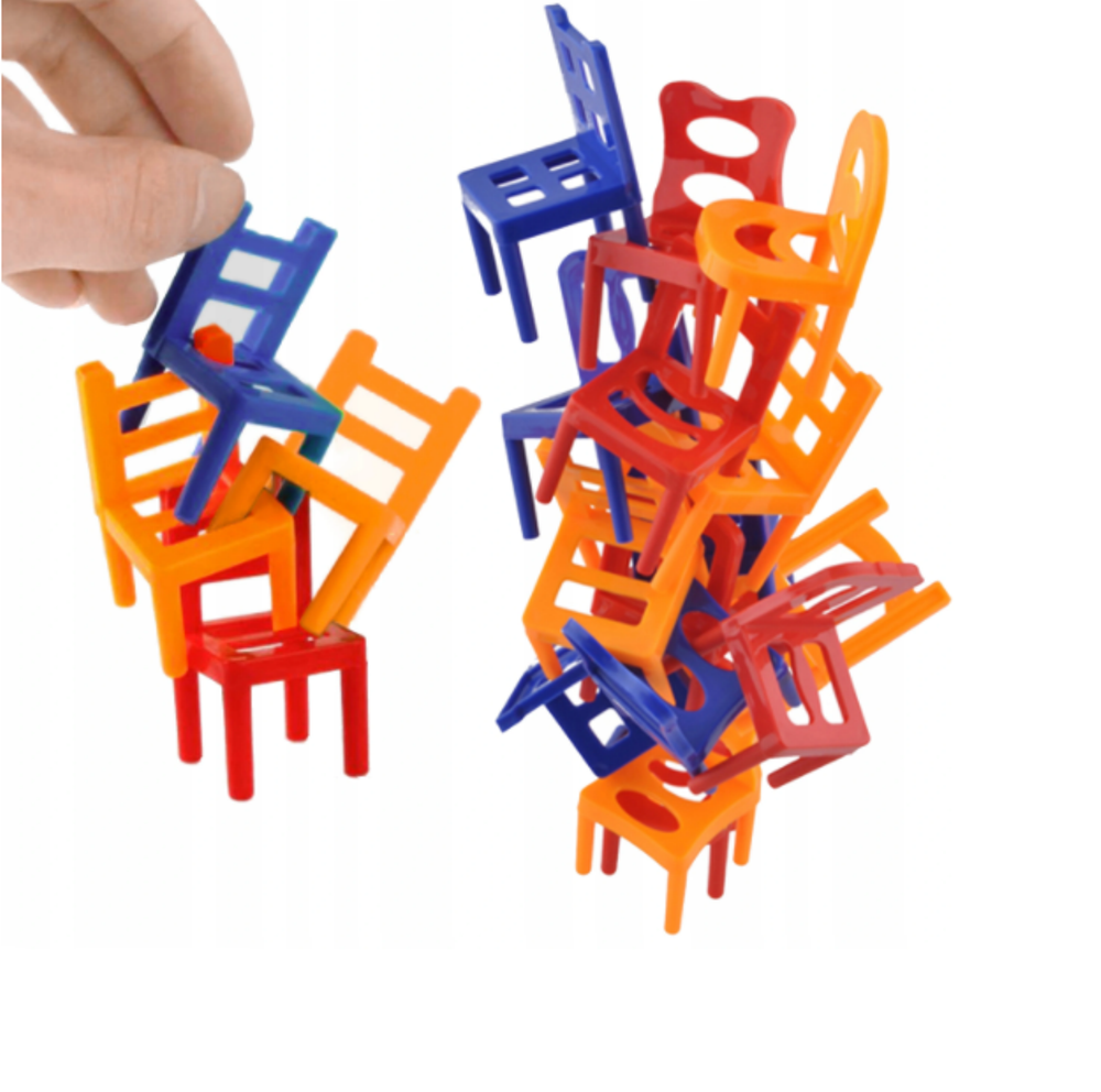 Autós székpakolós ügyességi társasjáték – építs széktornyot a mozgó kisautóra ( BBJ)